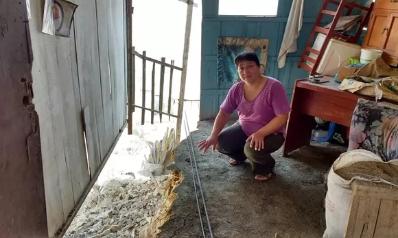 La señora María, quien es madre soltera con un hijo de 14 años, pide ayuda a las autoridades para poder remover los escombros de tierra y reconstruir su casa.