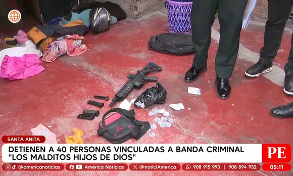 La Policía Nacional del Perú (PNP) llevó a cabo un operativo en la urbanización Santa Elvira, distrito de Santa Anita, en Lima, Perú, que resultó en la detención de 40 personas y la incautación de armas de fuego, drogas y material relacionado con actividades de extorsión.