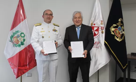 La firma fue realizada por el Ing. Jorge Ureña Schrack, Director General de Administración de la USMP, y el Contralmirante Imanol Laucirica Lizarzaburu, Director de Información de la Marina de Guerra del Perú.