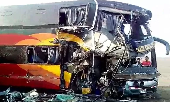 Trece personas resultaron heridas tras el choque frontal entre un bus interprovincial de la empresa Cruz del Sur y un camión de carga a la altura del kilómetro 491 de la Panamericana Sur en el distrito de San Juan de Marcona, provincia de Nazca, departamento de Ica.