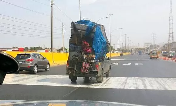 Mira cómo este chofer transporta peligrosamente decenas de objetos en Puente Piedra