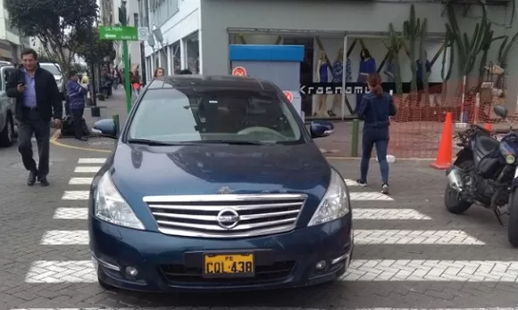 El vehículo azul de marca Nissan fue estacionado en pleno crucero peatonal