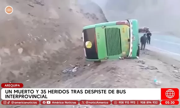 Un grave accidente de tránsito se produjo en la región Arequipa, Perú, donde un bus interprovincial con 60 pasajeros se despistó y volcó, dejando un muerto y 35 heridos. El hecho ocurrió en la Panamericana Sur, en el sector de El Fiscal.