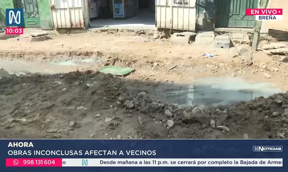Obras inconclusas afectan a vecinos de Breña