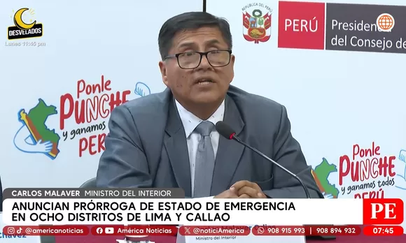 El ministro del Interior, Carlos Malaver, explicó que las zonas donde no se renovó el estado de emergencia no serán desatendidas. Afirmó que igual se realizarán patrullajes y acciones de seguridad como parte del plan “Perú Seguro”.