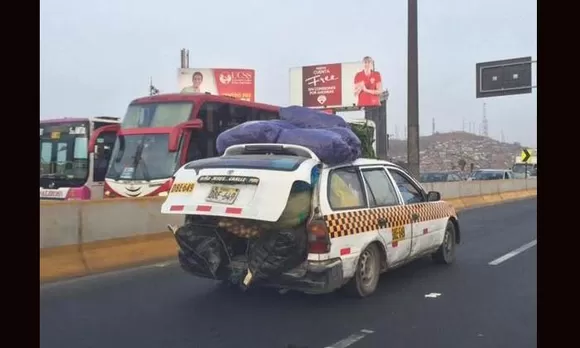 Como se aprecia en la imagen, el vehículo no puede cerrar su puerta trasera debido a la gran cantidad de sacos que transportaba en su interior. Sin contar los que están amarrados en su techo.