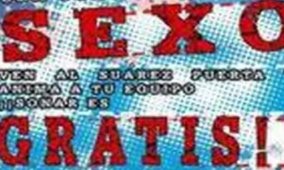 Puede que funcione. Y cómo no, con tremendo afiche que resalta dos palabras gigantes que atrae a muchos: "sexo" y "gratis". Sin embargo, quizás los hinchas se sientan desilusionados al leer el mensaje completo.