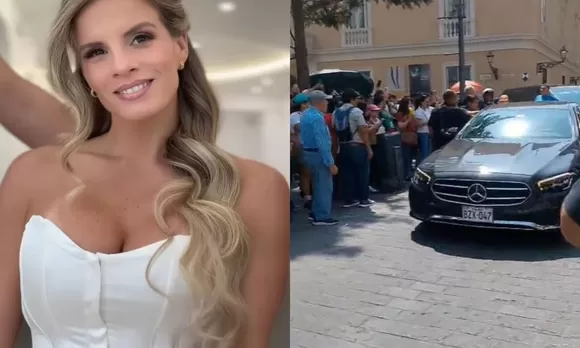 En las imágenes, difundidas por América Espectáculos, se ve al auto ingresar a la iglesia, mientras que muchos curiosos gritan el nombre del futuro esposos de Alejandra Baigorria.