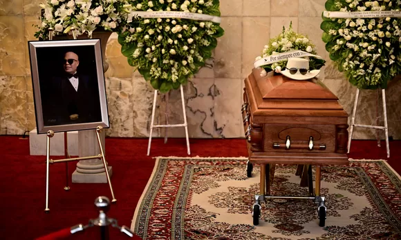 El féretro con el cuerpo del artista llegó al Teatro Nacional de Santo Domingo junto a varias coronas de flores. El sombrero y los lentes que lo caracterizaban también acompañaban al ataúd.