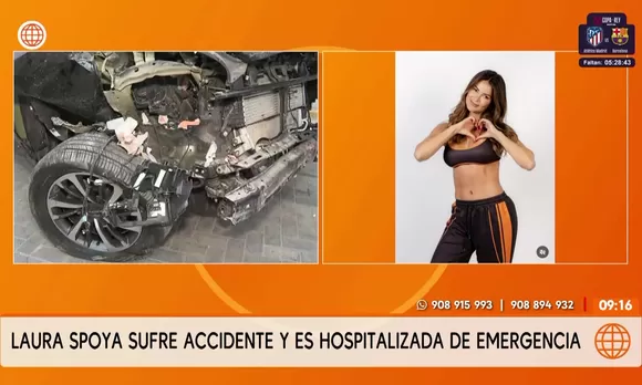 Laura Spoya sufrió un accidente en Surco durante la madrugada y fue trasladada a una clínica local.