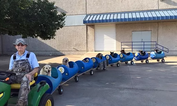 Bostick, un empleado jubilado del ferrocarril Union Pacific, que reside en una granja en Fort Worth, Inglaterra con su esposa y su hermano, ha construido un peculiar tren para transportar a los perros callejeros que ha rescatado a lo largo de los años.