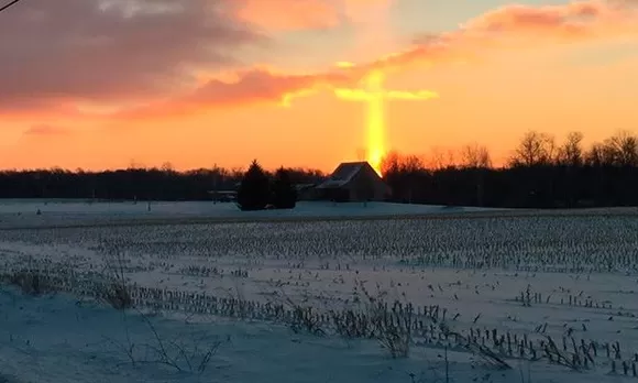 Photo of the Day: A woman in Michigan took this photo of the sunrise forming what appears to be a cross.