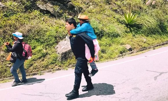 El hecho se produjo en la vía de Tarma a Pichanaki, sector de Carpapata, cuando la anciana se habría lastimado la pierna. En ese momento, el teniente PNP Juan Carlos Silva Baila no dudó en cargar a la mujer y ayudarla a cruzar toda la zona bloqueada por piedras.