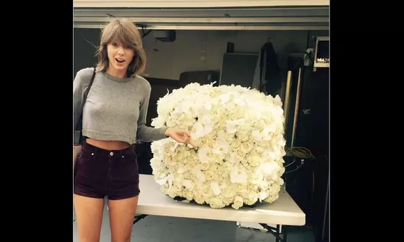 2. Luego está la estrella pop Taylor Swift parada junto al arreglo floral que Kanye West le envió despuéés de los Video Music Awards 2015. La foto tiene 2.5 millones de likes.