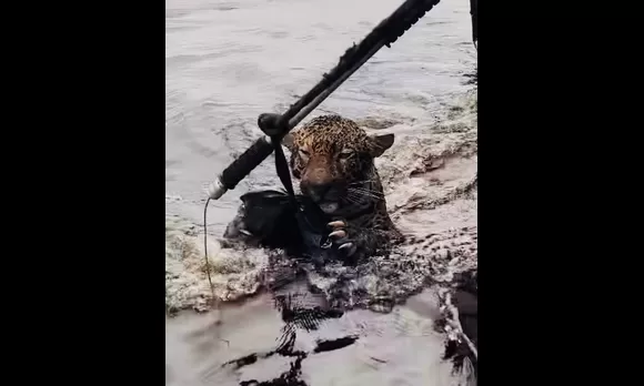 Un jaguar herido que nadaba en un río en Brasil fue rescatado por elementos de la Policía Militar del Amazonas, hecho que se hizo viral en redes sociales. El felino había recibido un disparo en la cabeza.