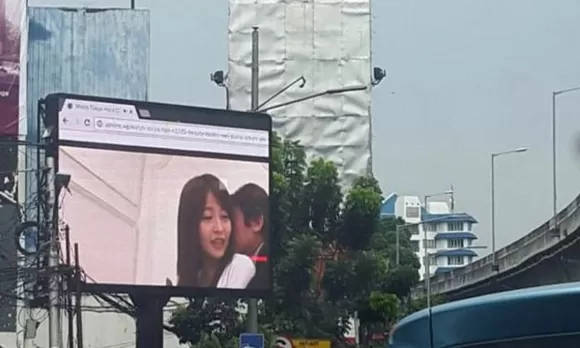 Cientos de personas que transitaban por una concurrida avenida en Indonesia quedaron asombradas cuando vieron que se transmitía una película porno en un panel publicitario. El hecho fue registrado en un video subido a Twitter.