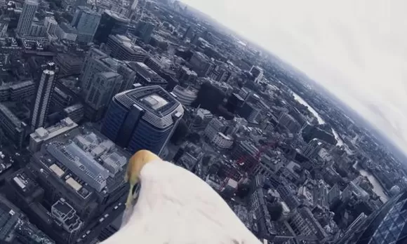 El detrás de cámaras muestra cómo le colocaron la cámara al águila antes de su vuelo por Londres