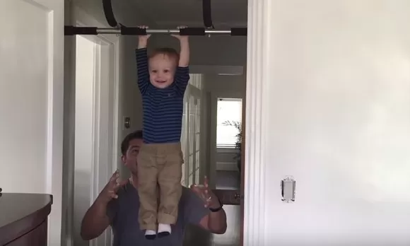 El padre lo deja suspendido por unos segundos en los que el niño solo sonríe a la cámara; sin embargo no puede flexionar los brazos como su padre – por obvias razones. El video fue subido a YouTube el pasado 27 de setiembre.