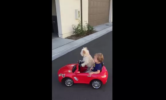 YouTube: pequeño es paseado por su perra en un convertible rojo