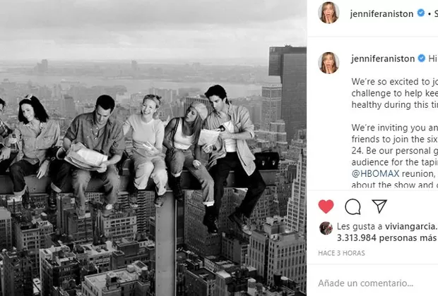 "Te invitamos a ti y a cinco de tus amigos a uniros a nosotros seis en el Estudio 24", dijo Jennifer Aniston en Instagram en referencia al lugar de las instalaciones de Warner Bros. en el que se rodaba la comedia.