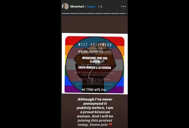 “Nunca he dicho esto públicamente, soy orgullosamente una mujer bisexual y voy a unirme a esta protesta hoy. Ven y únete con nosotros”, escribió Lili.