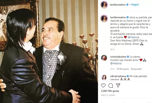 "Llora su partida, pero reponte en su honor y sigue con el ánimo y alegría que te caracteriza y que a él siempre le gustó. Dios te ayudará. Te acompaño siempre, estoy aquí para ti, sé fuerte. Don Félix Martínez. QEPD. Dios lo acoge en su Gloria. Amén", escribió la cantante.