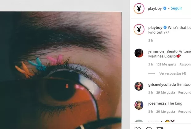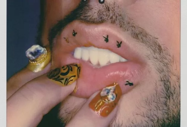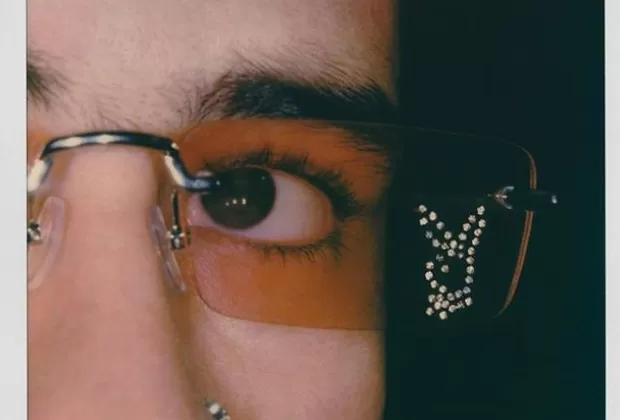 En la primera foto aparece parte del rostro del artista, quien luce unas gafas con la marca del famoso conejo de Playboy y un pendiente en el lado izquierdo de su nariz.