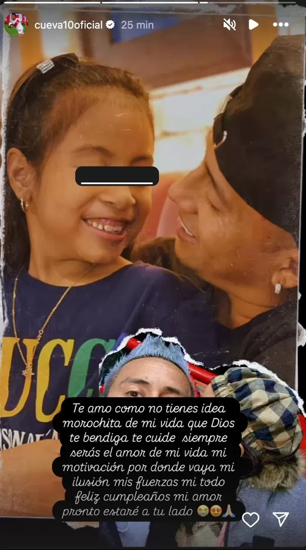 El volante peruano compartió una storie en su cuenta oficial de Instagram (@cueva10oficial), en la que se le ve abrazando a su hija mientras ambos sonríen.