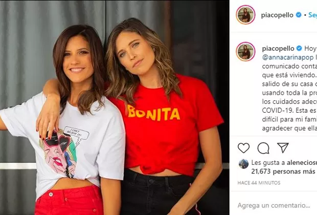 La cantante peruana Anna Carina Copello confirmó que dio positivo a COVID-19. La artista compartió su estado a través de una publicación en Instagram, red en la que también recibió el apoyo de su hermana, María Pía Copello.