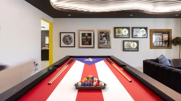 Destacan los grafitis de conocidos artistas locales en varias estancias, la bandera puertorriqueña en el tapete de la mesa de billar y un dominó, el juego más popular y tradicional de la isla caribeña, con el lema "orgullo boricua".