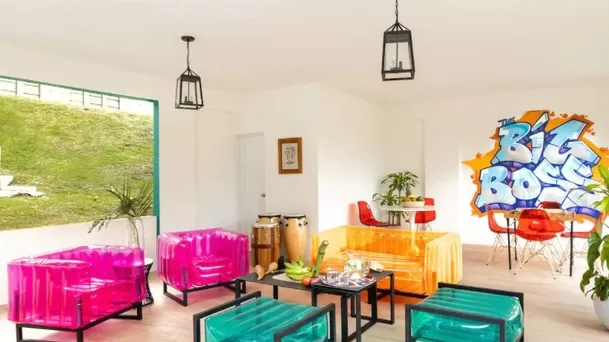 Los colores abundan en las paredes, en las sillas de la terraza y en las luces de los neumáticos que decoran el salón, entre otros elementos, en los que prima también un indiscutible toque puertorriqueño.
