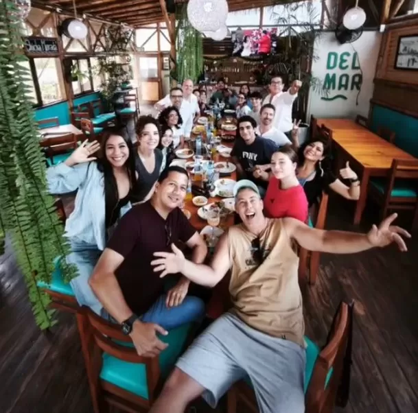 Galliani publicó el clip en su cuenta oficial, donde se le ve compartiendo una comida junto a Kukuli Morante, Jorge Guerra, Giovanni Ciccia y Guadalupe Farfán.