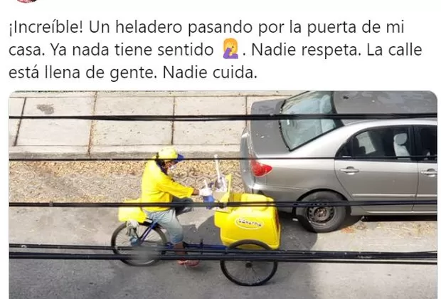 “¡Increíble! Un heladero pasando por la puerta de mi casa. Ya nada tiene sentido. Nadie respeta. La calle está llena de gente. Nadie cuida”, posteó Emilia la semana pasada en Twitter. De inmediato, los usuarios expresaron su indignación.