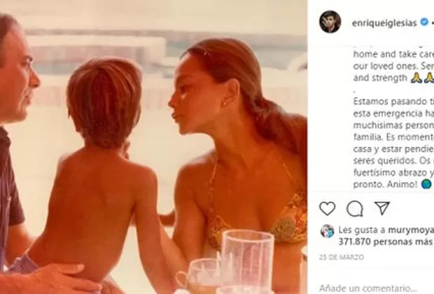 “Estamos pasando tiempos difíciles y esta emergencia ha alcanzado a muchísimas personas, incluida mi familia. Es momento de quedarse en casa y estar pendiente de vuestros seres queridos. Os mando un fuertísimo abrazo y espero veros muy pronto. ¡Animo!”, publicó Enrique junto a una tierna foto de su niñez al lado de Falcó y su madre Isabel Preysler.
