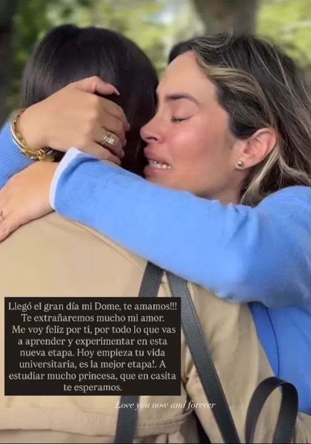 “Llegó el gran día, mi Dome. ¡Te amamos! Te extrañaremos mucho, mi amor. Me voy feliz por ti, por todo lo que vas a aprender y experimentar en esta nueva etapa. Hoy empieza tu vida universitaria, ¡es la mejor etapa!”, escribió Ethel Pozo visiblemente emocionada en una historia de Instagram.
