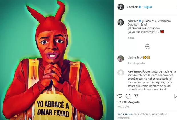 “¿Quién es el verdadero diablito? ¿Este? ¿El fan que me lo mandó? ¿O yo que lo reposteo?”, escribió Eugenio en Instagram como descripción de la fotografía.