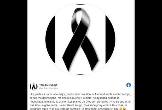 "Hoy partes a un mundo mejor, papá lindo has sido mi fuerza durante mucho tiempo, el que me aconsejaba, me decía lo bueno y lo malo, me ayudaba cuando lo necesitaba, tú mismo lo dijiste: Los planes de Dios son perfectos. Yo sé que sí, tú haz sido un gran padre, un excelente amigo, Dios sabe porque hace las cosas, te extrañaré tanto, y sé que estarás conmigo, te amo papá, descansa en paz", se lee en la publicación.
