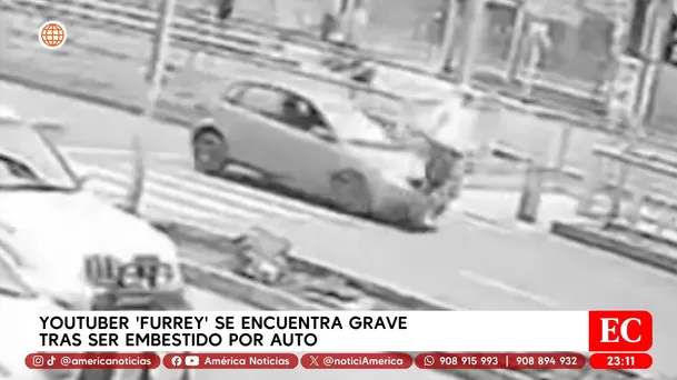 Cámaras de seguridad mostraron cómo un auto embiste violentamente al streamer, quien terminó con graves lesiones