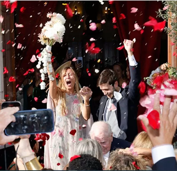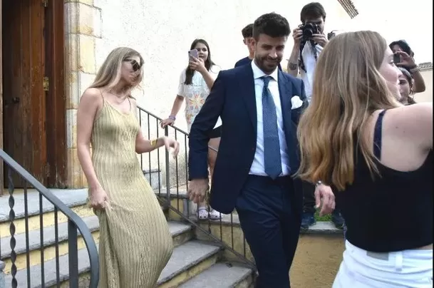 Pero los reflectores apuntaban hacia otra pareja que ni se casaba ni anunciaría compromiso, el hermano del novio, Gerard Piqué, y su enamorada Clara Chía. A pesar de que intentaron esquivar a la prensa, en las imágenes se ve a Chía con un sencillo vestido veraniego dorado, sandalias de tacón y acrílicas transparentes, cabello suelto al viento y lentes de sol. Mientras que el exfutbolista eligió un traje sobrio azulino y una camisa blanca. La pareja causó tanto alboroto que, para no interrumpir la ceremonia, tuvieron que ingresar por la puerta trasera.