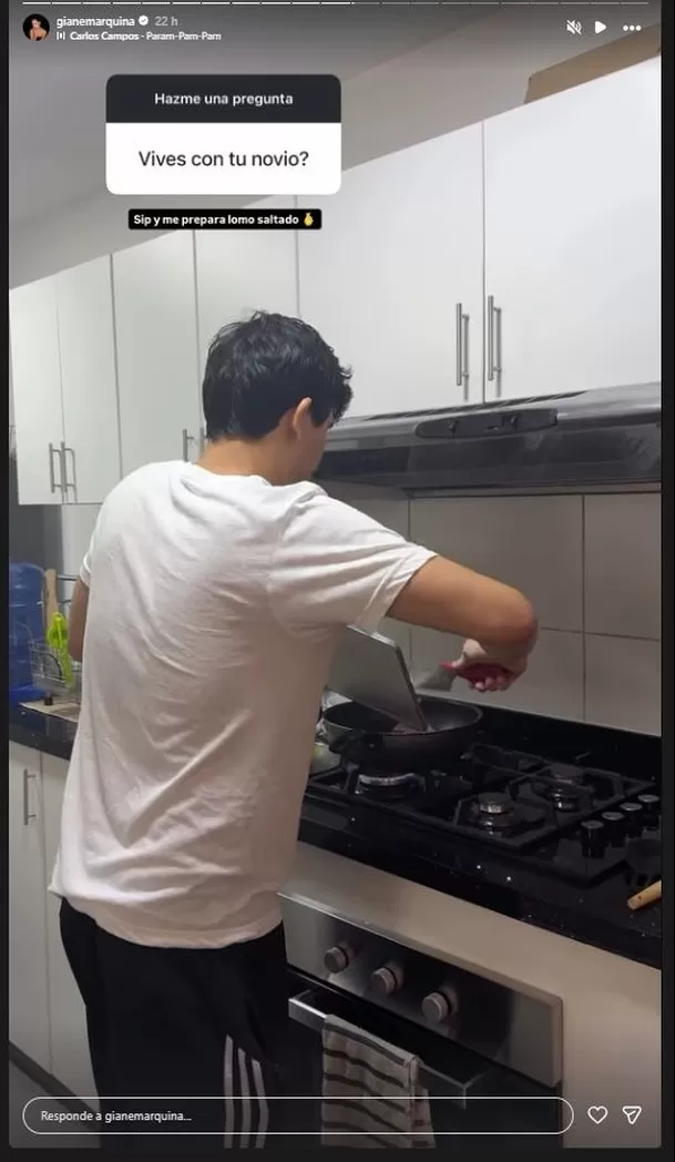 En la imagen, se ve a su novio preparando un clásico lomo saltado en la cocina de su casa. “Sip y me prepara lomo saltado”, escribió Gianella como respuesta directa a la consulta: ¿Vives con tu novio?