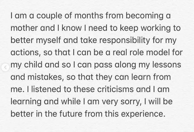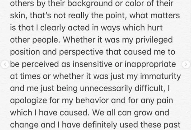 "Ya fuera por mi posición y perspectiva privilegiadas lo que causó el ser percibida como insensible o inapropiada en ocasiones, o simplemente por mi inmadurez o por ser innecesariamente difícil, pido disculpas por mi comportamiento y por cualquier daño causado”, continuó la intérprete.