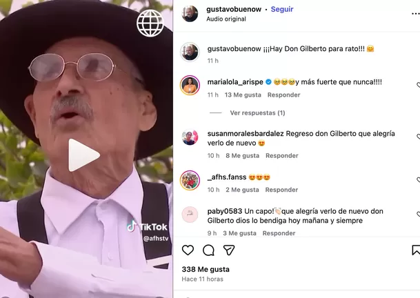 "Hay Don Gilberto para rato", escribió el reconocido actor en Instagram. Este regreso fue ampliamente celebrado por los fans de la serie, quienes extrañaban al noble 'Don Gil'.