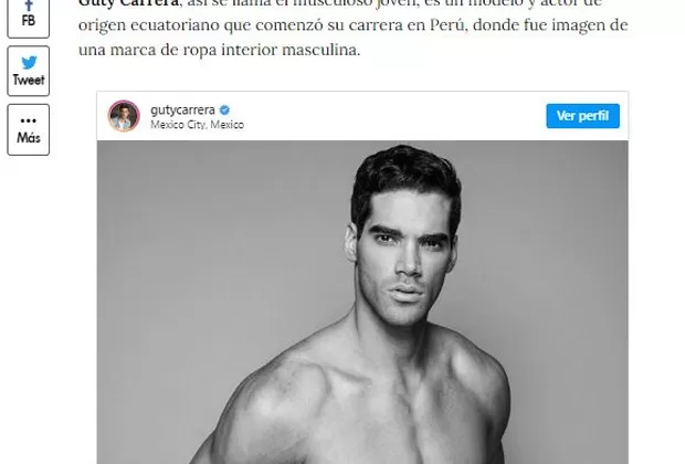 El titular de la nota es: “Conoce al sexy primo de Danilo Carrera”. El portal también destaca la carrera de Guty.