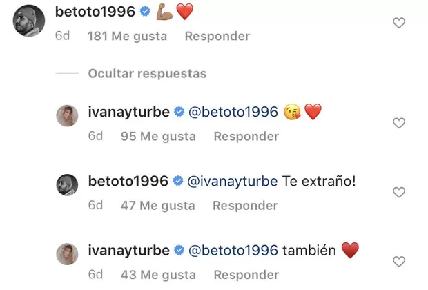En una publicación de la modelo, Beto le dice “te extraño” a lo que Ivana responde: “También”. Pero lo que más alborotó a los usuarios de Instagram fue ver que Da Silva ya no oculta su amor por la competidora de EEG.