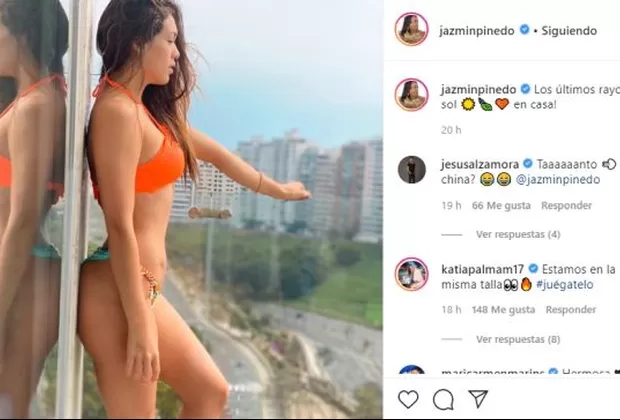 En sus historias de Instagram, Jazmín aparece en bikini y haciendo sentadillas en el balcón de su casa.