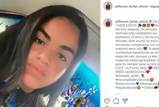 Jefferson Farfán es el padre más orgulloso, así lo hizo saber este jueves cuando le dedicó un conmovedor mensaje a su hija mayor Maialén, quien cumple 15 años.