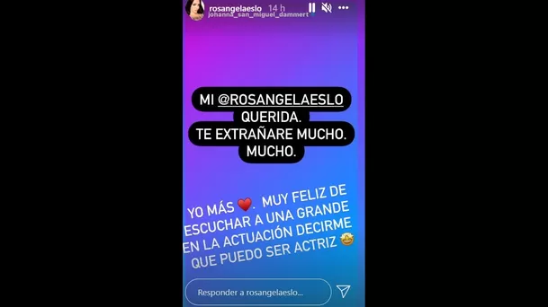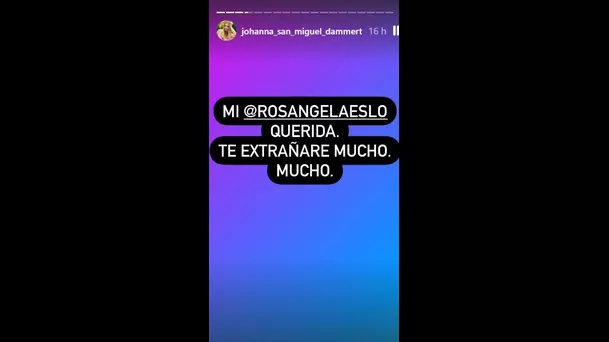 “Mi Rosángela Espinoza querida, te extrañaré mucho, mucho”, posteó Johanna en sus historias de Instagram.