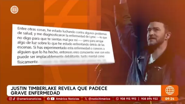 El cantante Justin Timberlake sorprendió al anunciar que lucha contra la enfermedad de Lyme y explicó cómo afecta su salud.