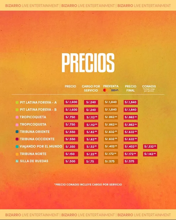 Si ya decidiste qué zona elegir, recuerda las fechas clave. La preventa es este miércoles 29 de abril desde las 9:00 a.m y la venta general, el jueves 30 de abril, a partir de las 9:30 a.m.