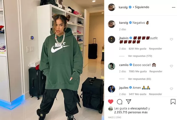 Este fin de semana, Karol G reveló el resultado de una nueva prueba para coronavirus. A través de su cuenta de Instagram, la intérprete colombiana posteó: “Negativo”.